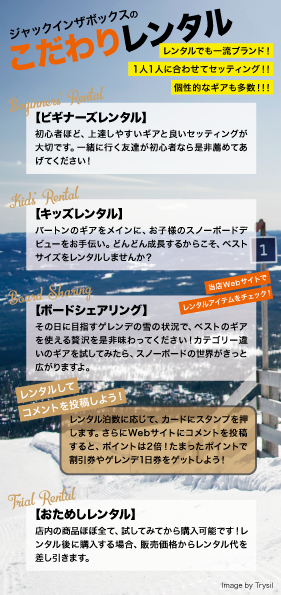 スノーボード店としては、かなりのボリュームがあるウェブサイトではないでしょうか。様々なサービスがあるので雑然としないよう、情報の整理に気をつけています。